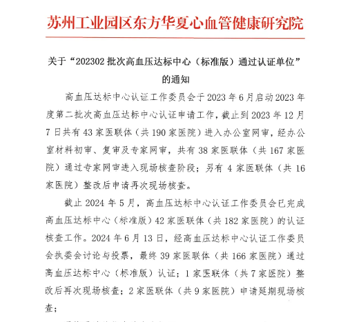 ▲ 高血压达标中心总部公布2023年第二批次高血压达标中心通过认证单位名单